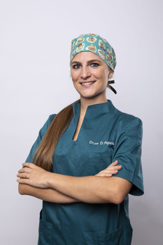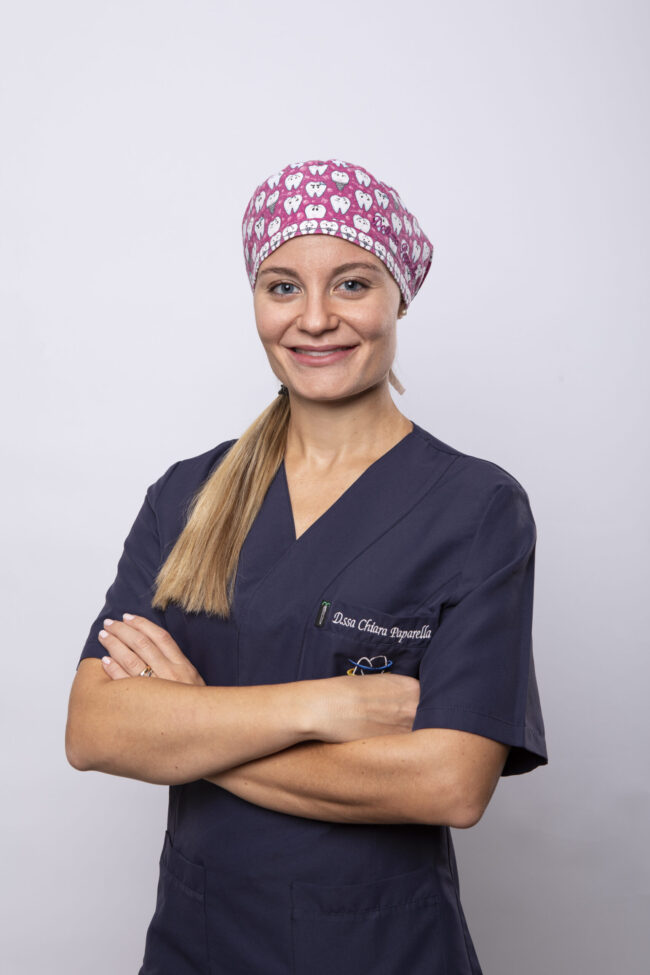 DOTT.SSA CHIARA PAPARELLA odontoiatra. E’ la “fatina” dei bambini, particolarmente amata dai nostri pazienti piu’ piccoli con i quali ha sviluppato pazienza, dolcezza e tecnica, caratteristiche che riversa anche sugli adulti. Si dedica in particolare alla conservativa-endodonzia e protesi su denti naturali.
